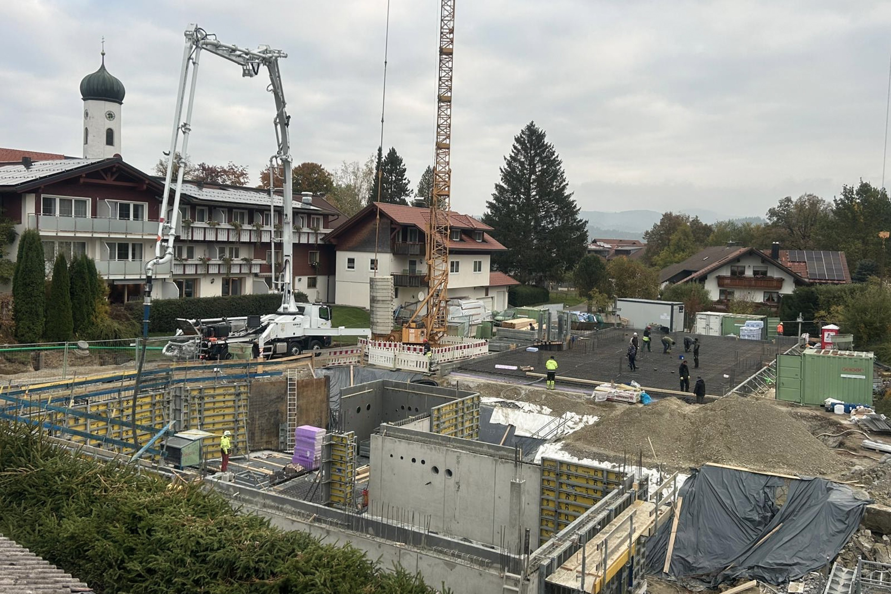 Startschuss für unser neues Projekt Anton & Cilli in Obermaiselstein. Momentan werden die Bodenplatten betoniert.