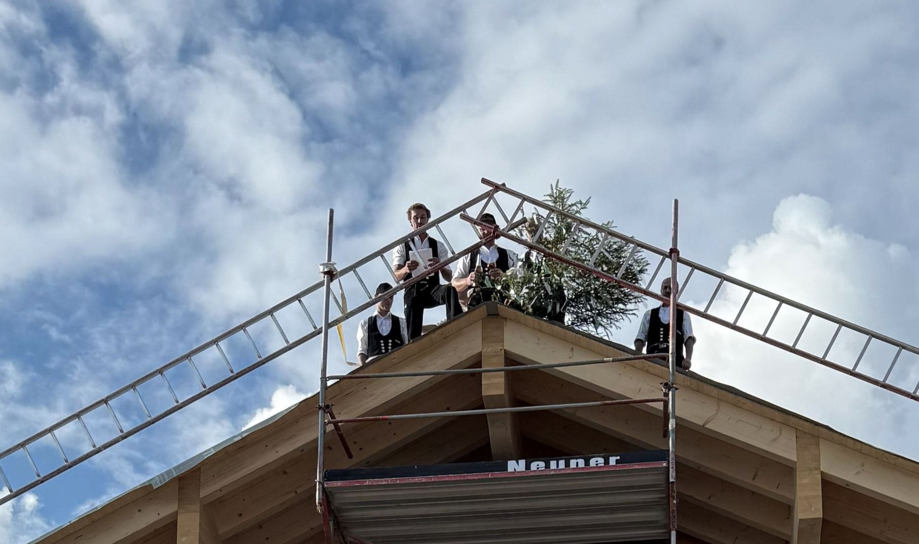 Auf unserer Baustelle in Obermaiselstein steht der Holzbau. Letzte Woche fand das Richtfest statt.